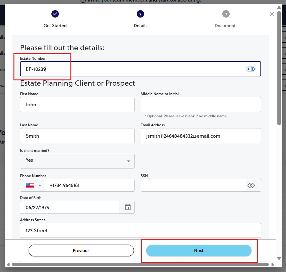 You will then be prompted to enter an Estate Number. Enter the reference number and click Next.