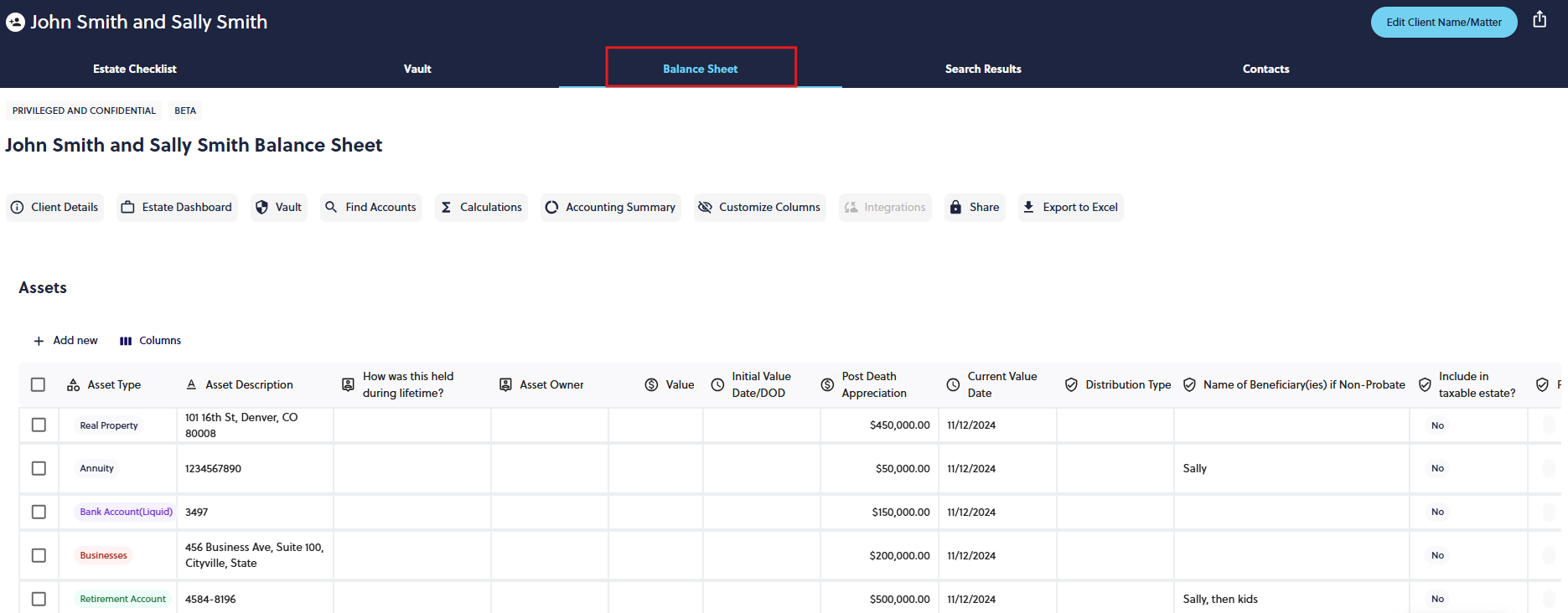 - All Assets and Liabilities entries will be available under the Balance Sheet tab.