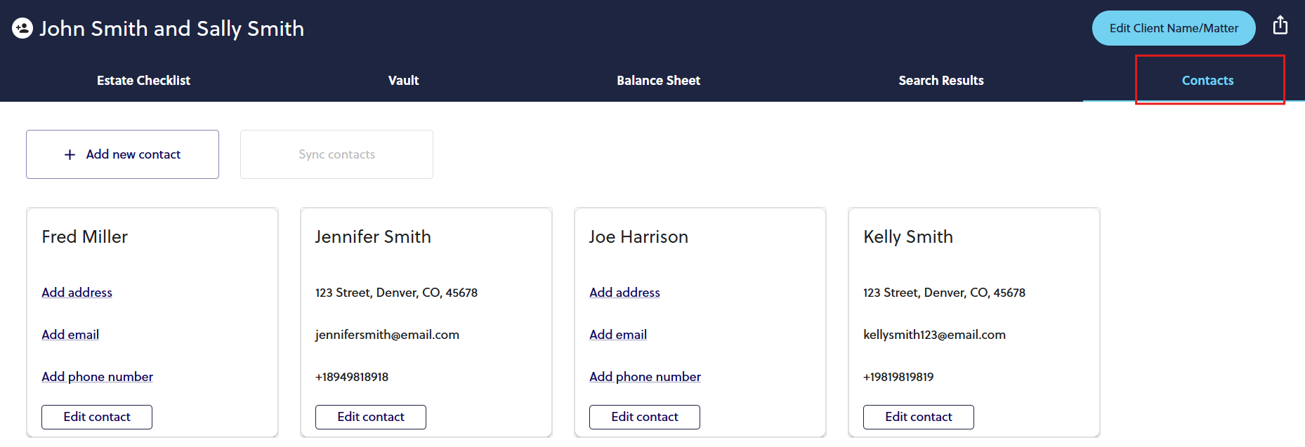 - All contacts from the DecisionVault matter will be available under the Contacts tab.