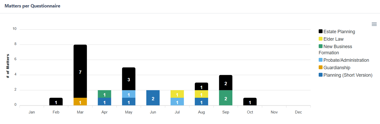- Matters per questionnaire: Understand which questionnaire types are being used most often.