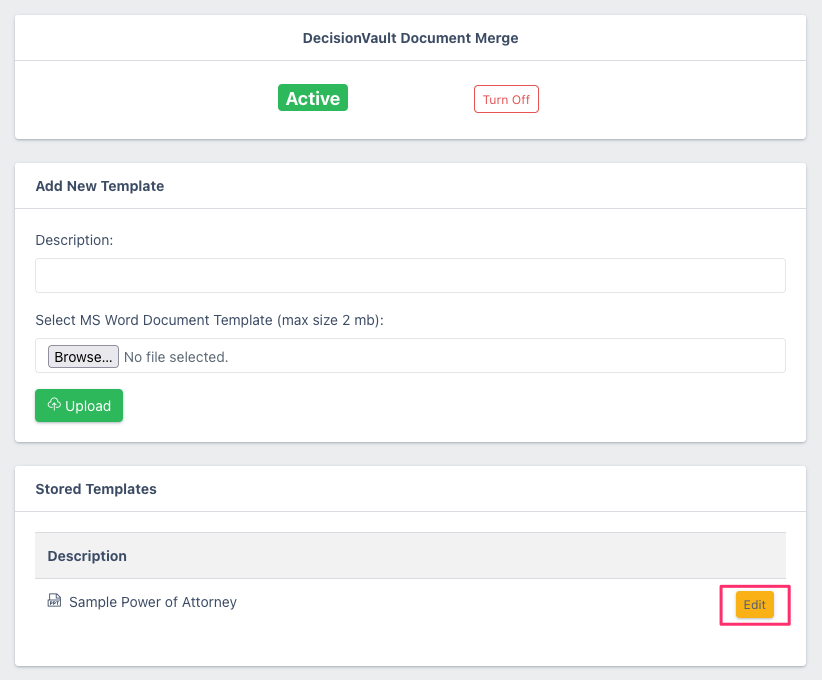 Step 2 - Upload to DecisionVault Document Merge Settings