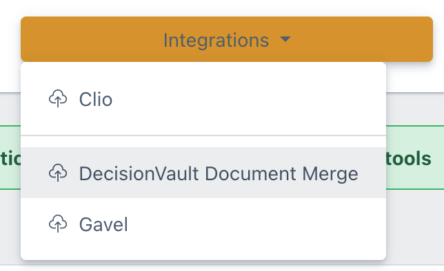 Open a matter, then from the integration dropdown find "DecisionVault Document Merge"