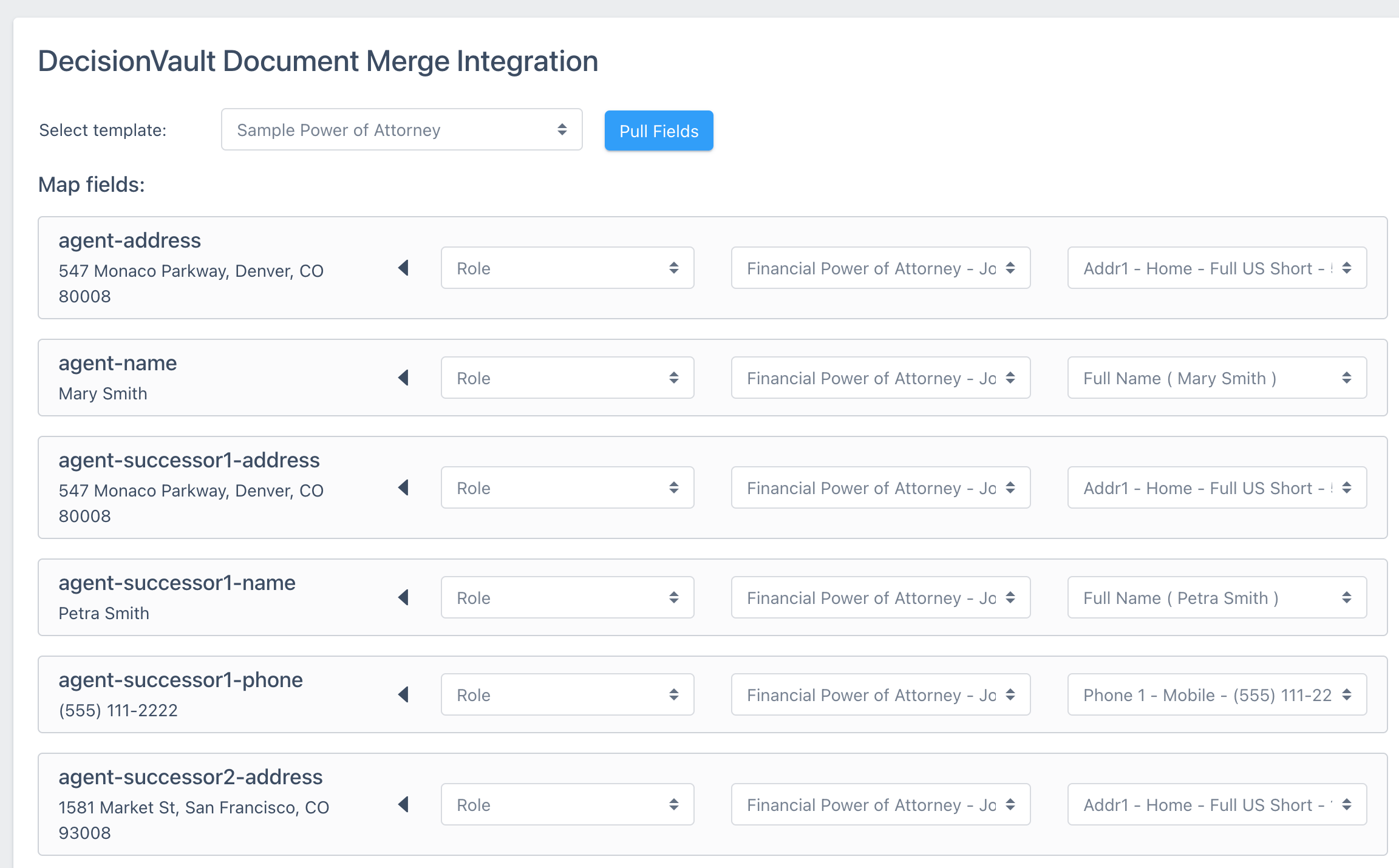 Pull the fields for the template, then map these fields to information present on the matter: