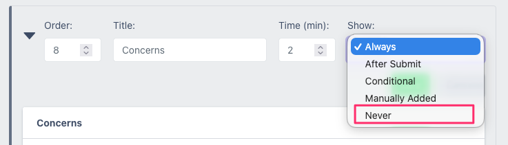 Then set the section to be shown "never":
